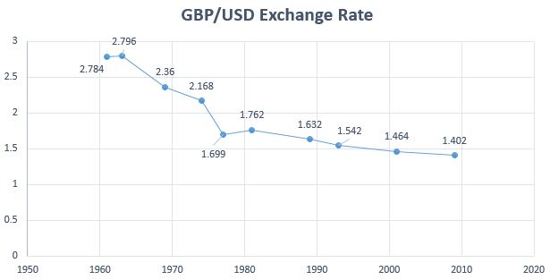the exchange rates between the UK/US (GBP/USD) on the day each new US President